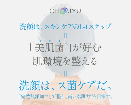 2001年に創業。2002年に発売した「つかってみんしゃいよかせっけん」は大変なご好評をいただき、今でも多くのお客様に愛用いただいています。当時から貫いてきた信念、自然の力を信じた完然無添加(R)※2という製法は、現在運営しているブランド「然」「SHIKARI」「unito」すべてに通じる、CHOJYUが提供し続ける価値です。さらにこだわり続けるのは、洗顔。汚れが落ちればよいくらいの作業になってしまいがちなので、おざなりの商品選びになってしまう。ゆえに、低価格帯の商品が多いカテゴリーです。CHOJYUは、洗顔をスキンケアの重要な1st ステップと位置付けおり、その大切さをお客様にお伝えし続けてきました。あらためて、この大切さを広めていくにあたり、「美肌菌」に着目。美肌をサポートする「美肌菌」が好む肌環境を整えるにあたっては、洗顔のあり方、そして完然無添加(R)※2が大きく関係します。これをさらに社会にお届けし、ひと、社会、未来をもっとしあわせにしたい。その想いを込めて、洗顔プロジェクトを発足いたしました。