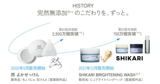 トップブランド「SHIKARI」のBRIGHTENING WASH(normal・mild・black)、BRIGHTENING WASH smooth bubble、「然-しかり-」のよかせっけん5つの商品を通して洗顔の価値、完然無添加(R)※2の価値、関わる美肌菌の大切さを広めるためにPOP-UPストアやSNS、メディア露出の活動を推進していきます。活動の進捗はコーポレートサイトのプロジェクトページに随時アップしていく予定です。