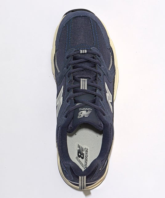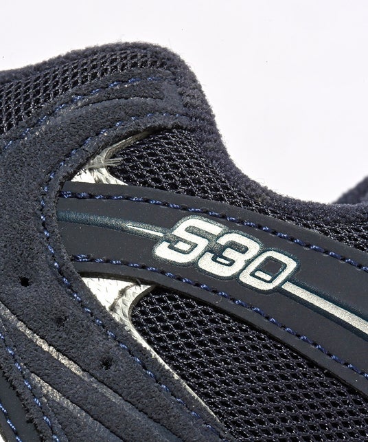 2000 年代のフィットネスランニングシューズのスタイルを、モダンにアップデートしたニューバランス“530”。今回、『Safari』監修モデル第3弾となる“530”では、メッシュ素材&スウェードとシンセティックレザーで構成されたアッパーを、『Safari』のアイデンティティカラーであり、ニューバランスの定番カラーのひとつでもあるシックなネイビーの1足に仕上げました。またシューレースもネイビーにし、落ち着いた雰囲気を演出。さらにアウトソールは、ややくすみのある黄色味がかったオフホワイトで、クリーンすぎない印象に仕上げているところも魅力になっています。