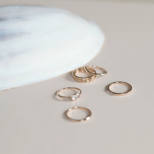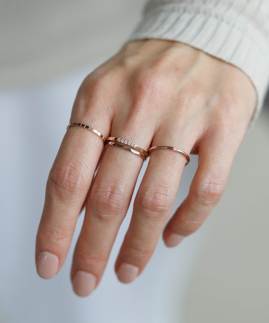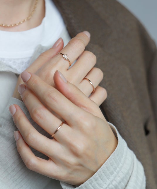 カットが施された華奢なリングや、メレダイヤ・天然石をあしらったリングがラインナップ。