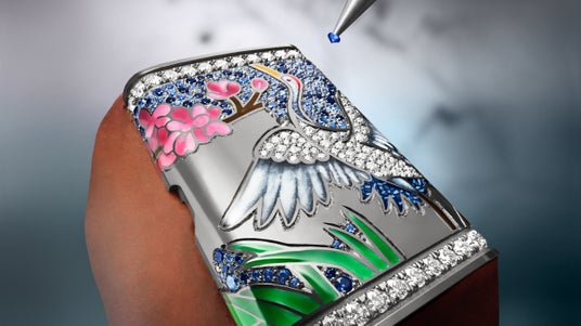 「ハイビスカス・ローザ」と「サクラ」モデルのデザインでは、宝石のセッティングにスノーセッティング技法が採用されています。異なるサイズの石がランダムに配置されているように見えますが、この工程には極めて高度な技術を要します。ジェムセッターは金属台座が完全に見えないよう、また途切れることのない光の広がりと輝きを生み出すため、石のサイズを決め、位置を厳選します。ジェムセッターの卓越した技量をさらに証明するように、三つのモデルすべてにおいて、ダイヤモンドのセッティングはケース裏蓋からベゼルに至るまで、カーブしたケースの側面をシームレスに覆っています。