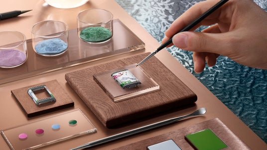 新しいレベルソ・ワンのデザインは、メティエ・ラール(TM)工房の芸術性と技術を余すところなく発揮しています。エナメル職人やジェムセッターが緊密に連携し、数週間から数ヶ月を要する入念に調整された工程で制作が行われます。マニュファクチュール内の専用工房に様々な職人を集結させることで、このような緊密な連携が可能となっています。