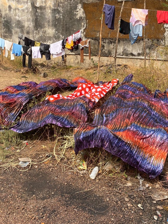 今回のTシャツには、シエラレオネの伝統的な Gara(ガラ)布 をデザインとして採用しました。Gara布は、タイダイ染めを用いた伝統染色技法で、現在では継承者が少なく貴重な無形文化財として守るべき文化のひとつです。