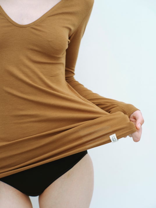 柔らかなウエーブが美しいVネックロングスリーブインナー