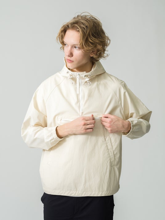 軽量なアノラックスタイルに、柔らかなリップストップ素材を使用。便利なポケットと調節可能なフードで、自在にカスタマイズ可能です。