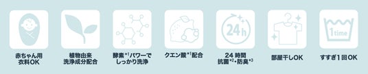 *1 洗浄補助剤として *2 全ての菌の繁殖を抑えるわけではありません *3全てのニオイを防ぐわけではありません