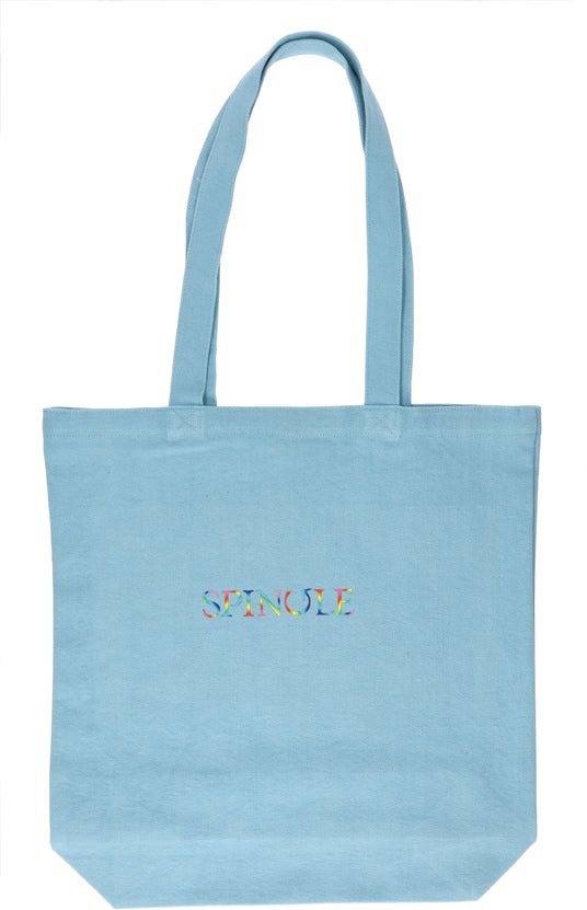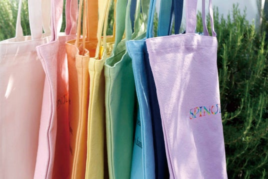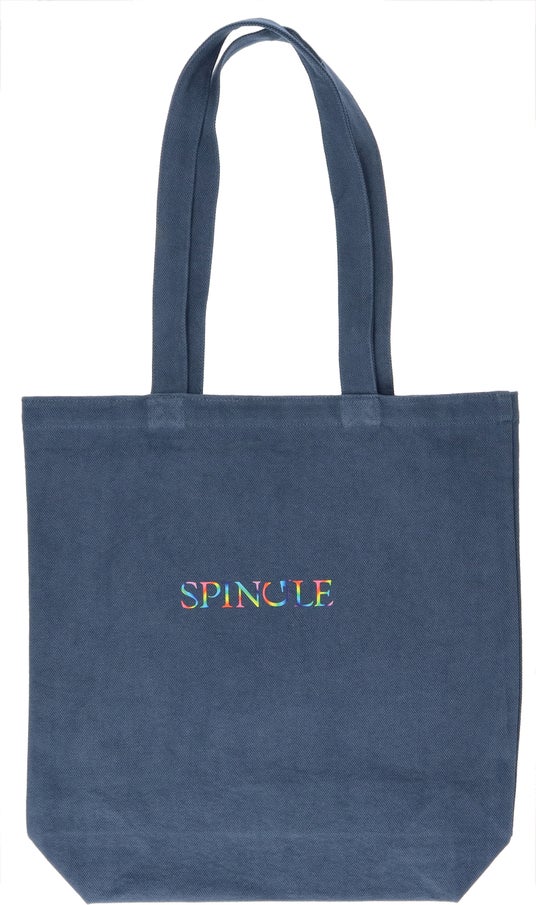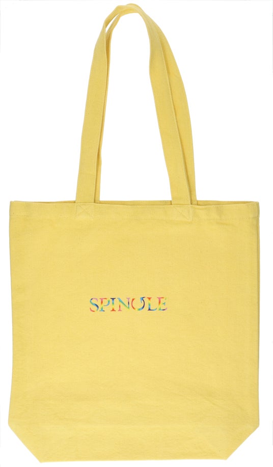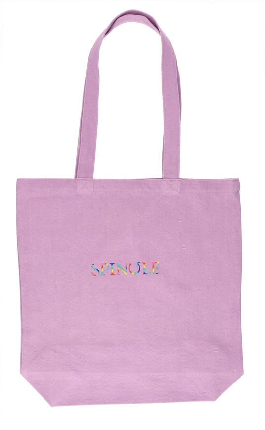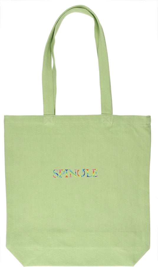 また、色名は日本に古来より伝わる伝統色を付けました。生地は、折り鶴から再生した「折り鶴レーヨン糸※」を活用した丈夫なキャンバス生地です。紡績や製織、染色は広島県福山市内の工場で生産しており、染色工程で洗いがかかったやわらかな風合いが特徴です。表面には虹色のSPINGLEロゴ、裏面には「Make a Circle」に込めた想いを英語で綴った文章をプリントしています。