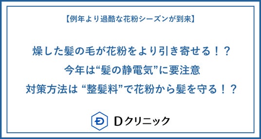 男性の発毛治療をメインに行うDクリニック東京(所在地:東京都千代田区、院長:小山太郎)では、20~60歳の男性200名に対し、「花粉の時期の髪/頭皮ケア」に関する調査※1を実施いたしました。調査結果を踏まえ、Dクリニック東京院長の小山太郎医師より、花粉の時期に心掛けたい「髪/頭皮ケア」について解説いたします。