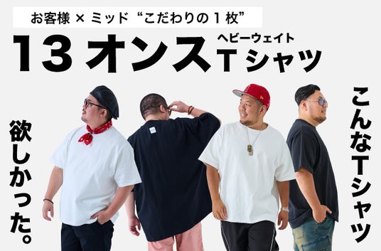大きいサイズのメンズ服通販サイト「ミッド・インターナショナル」( https://www.bigsize.co.jp/ )を運営する株式会社マンチェス(本社:岐阜県岐阜市、代表取締役:高見澤 聡)は、2025年8月5日(火)からお客さま×大きいサイズのミッドが作り上げたミッド史上最もヘビーな13オンスヘビーウェイト半袖Tシャツを販売開始。