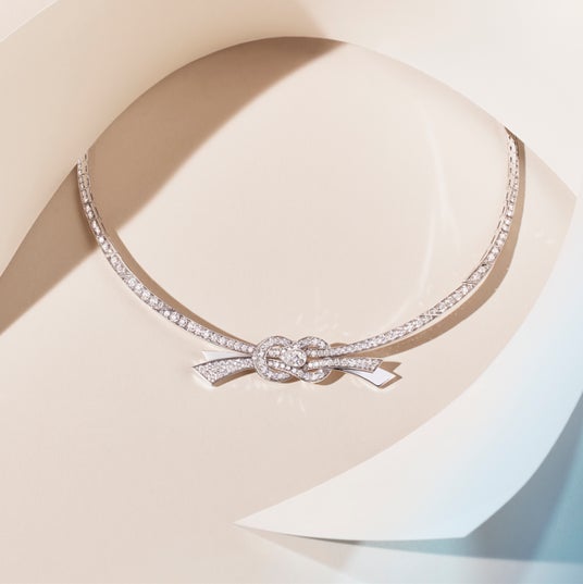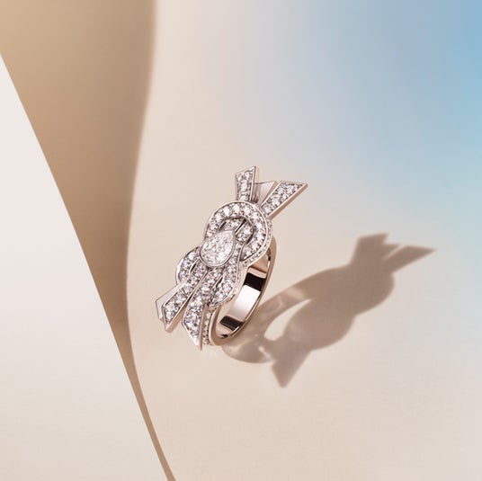 新しい「シャンス アンフィニ」のデザインは、象徴的なモチーフの端が繊細に描かれたデザインになり、このラッキーナンバーが神秘的で究極に女性らしいリボンへと変貌を遂げています。この洗練された美学に、繊細に再解釈されたラインのリズムに合わせた動きが曲線を強調させ、絡み合ったエレメントが優雅な生命の帯を織りなします。