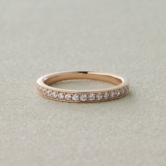 リングの上下にフチをつけたデザインのハーフエタニティリング。