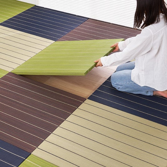 1. インテリアに映えるカジュアルなストライプ柄い草の心地よい質感はそのままに、独自のストライプ柄でスタイリッシュな雰囲気に仕上げました。カラーはナチュラル、ブラウン、グリーン、ブラックの4色展開。単色使いはもちろん、複数色を組み合わせることで、お部屋に遊び心をプラスできます。