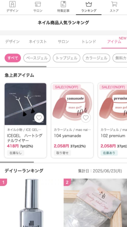 ネイルブックストアは、プロネイリストやセルフネイルユーザーが日常的に活用するネイル特化型ECです。ランキングやレビュー機能など、ユーザーの購買行動を後押しする仕組みが整っており、メーカー様の商品を効果的に届ける場としても活用されています。