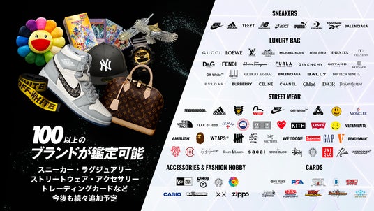 現在、スニーカーブランドをはじめ、アパレル、アクセサリー、ラグジュアリーブランド、トレーディングカードなど100以上のブランドを鑑定することができます。今後も対応ブランドを追加してまいります。