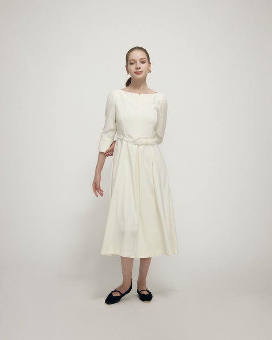 2023年春の発売以降、常にランキングトップインし、5度目の再販中のCatherine flare dress。派手な装飾がなくワンカラーだけれども、周囲に埋もれず上品な雰囲気をまとうドレスはAudireのアイコニックともいえる名品に。