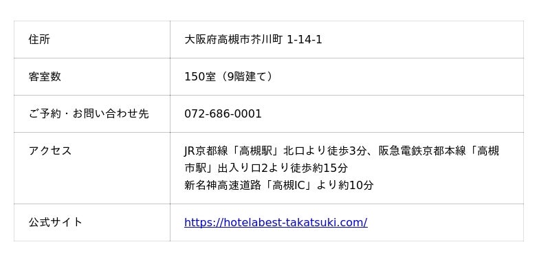 「ホテルアベストグランデ高槻」公式サイト:https://hotelabest-takatsuki.com/index.html