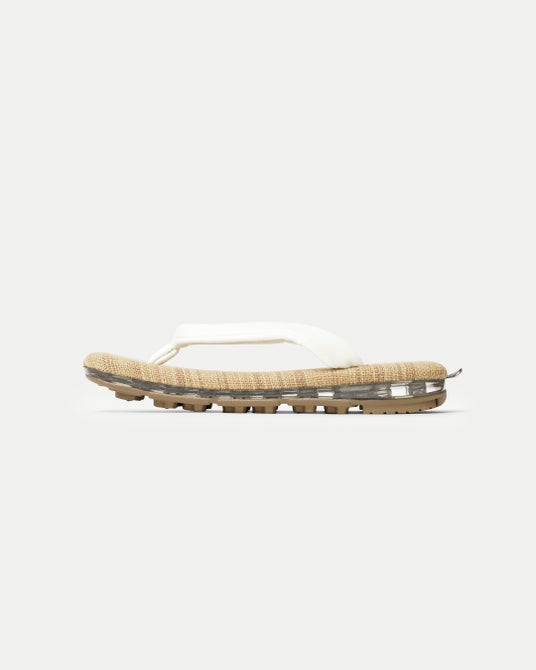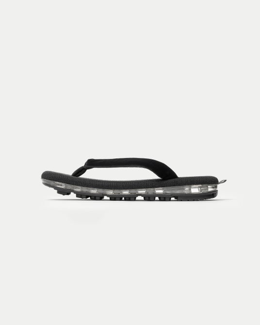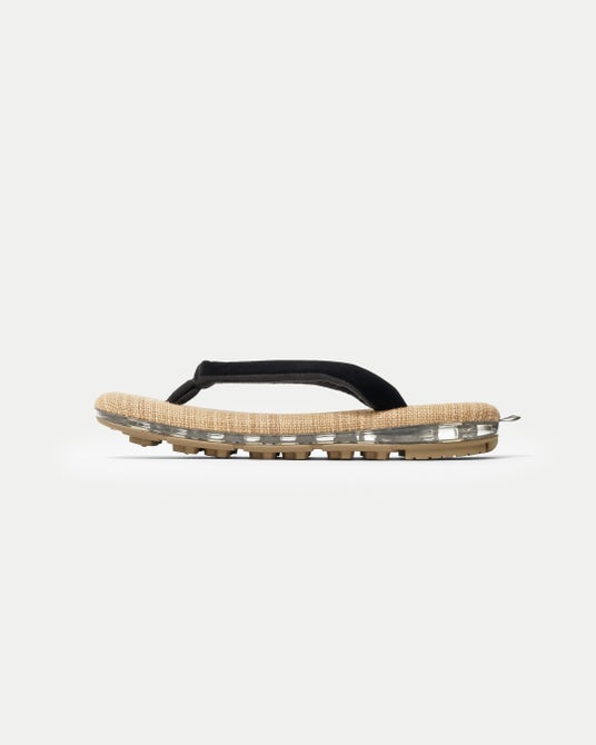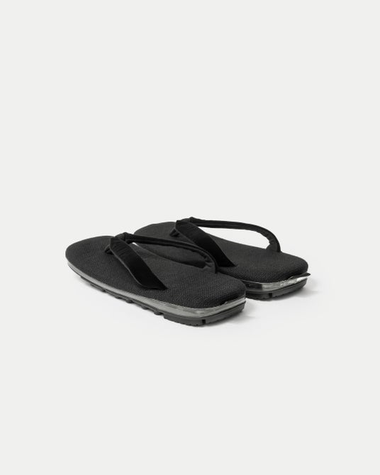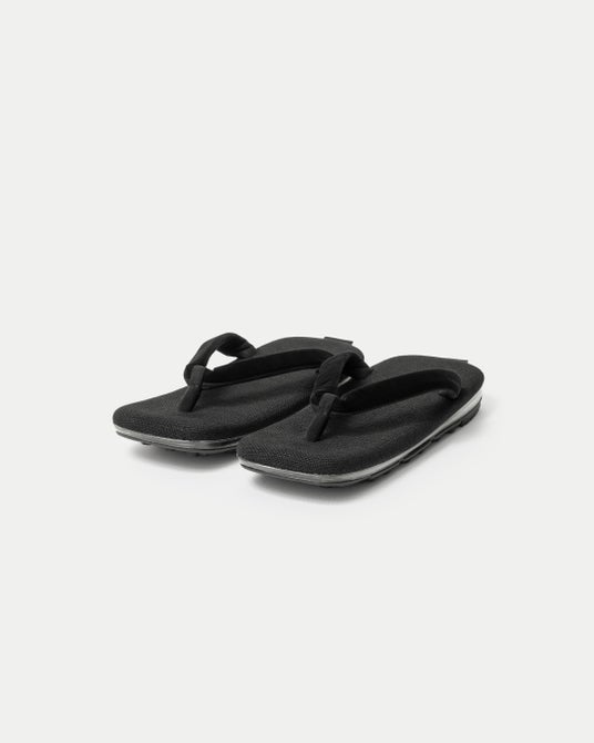 「unda HOVER(ウンダ ホバー)」は、つま先からヒールまでエア構造を採用した薄型のフルレングスエアーソールが最大の特徴です。足裏全体に均一なクッション性をもたらしながら、ソールの厚みを抑えることで、より伝統的で雪駄らしい佇まいが実現しました。