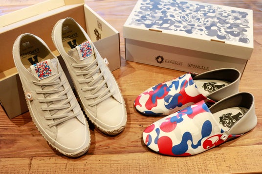 株式会社スピングルカンパニー(本社:広島県府中市、代表取締役:内田貴久)は、2025大阪・関西万博をモチーフにデザインしたコラボレーション商品として、SPINGLEで人気のカンガルーレザーを使用したローカットタイプのスニーカーSPINGLE「SP-1075」および、踏み抜き防止機能を備えた牛革製のルームシューズSPINGLE「SP-1782」を2025年9月26日より順次、公式オンラインショップ、全国のSPINGLE専門店、シューズショップで発売します。