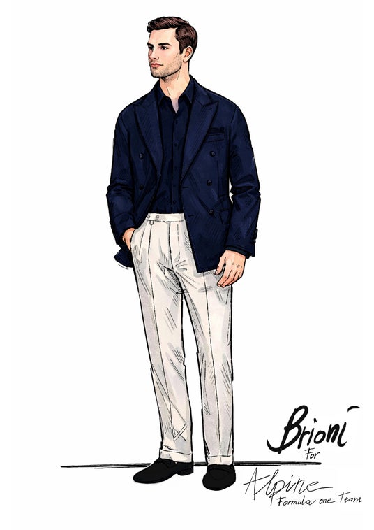BWTアルピーヌF1チームは、主要な機会や特別なイベントにおいてブリオーニを体現します。リーダーシップチームはブリオーニによるテーラードルックを着用し、その存在感を示します。