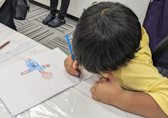 店内にはお絵描きコーナーを設け、その場で描いたイラストもデザインとして使うことができ、ペット