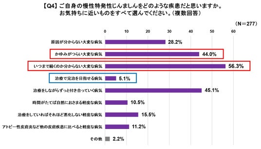 かゆみがつらく、10年以上症状が続く人も多い「いつまで続くのか分からない大変な病気」。9割超の患者さんは「分子標的薬」という新しい治療選択肢を知らない
