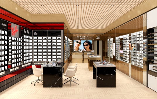 137平方メートル の店内デザインは、Ray-Banの黒を基調にブランドのアイコニックな赤を内装に取り入れ、Ray-Banのクリエイティブなスピリットとライフスタイルを表現しています。また、壁一面に並ぶ印象的なディスプレイにはメガネフレームとサングラス合わせて約300本のRay-Banのアイウェアが陳列されます。