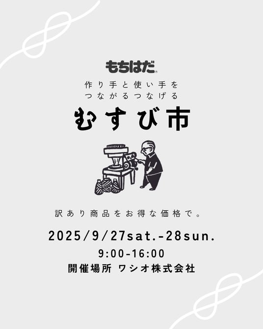 ワシオ株式会社は、「むすび市」を通じて、職人の手で丁寧に作られたもちはだ(R)と人、人と人とを結ぶ場をつくっていきます。