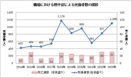 参考)厚生労働省「令和5年 職場における熱中症による死傷災害の発生状況」