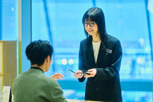 入社後の体系的な研修はもちろん、眼鏡作成技能士の資格取得支援、デザイナーによる新作勉強会、福井・鯖江の生産現場での研修など、アイウェアのプロフェッショナルとして必要な知識と技術を深く学べる機会を豊富に提供しています。