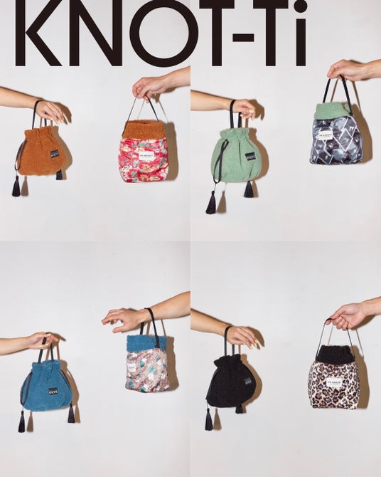 KEITAMARUYAMAが展開するデイリーライン KM MARKET(ケーエムマーケット) は、人気アイテム〈KNOT-Ti(ノッティ)〉巾着バッグの新作として、秋冬シーズンにぴったりの “ボア素材”を発売いたします。同時に、新たなアーカイブテキスタイルを活かした新作3種類も登場。