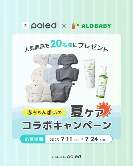 PoledとALOBABYは、それぞれ“安全”と“やさしさ”を届けるブランドとして、赤ちゃんとご家族の夏を快適に過ごしていただけるよう、本キャンペーンを企画しました。