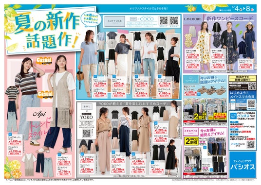 ファッションプラザ パシオスは、婦人・紳士・子供のファッション衣料・服飾雑貨・肌着・リビング用品を扱う、関東・甲信・東海・近畿に店舗を展開している「総合衣料専門チェーン店」です。