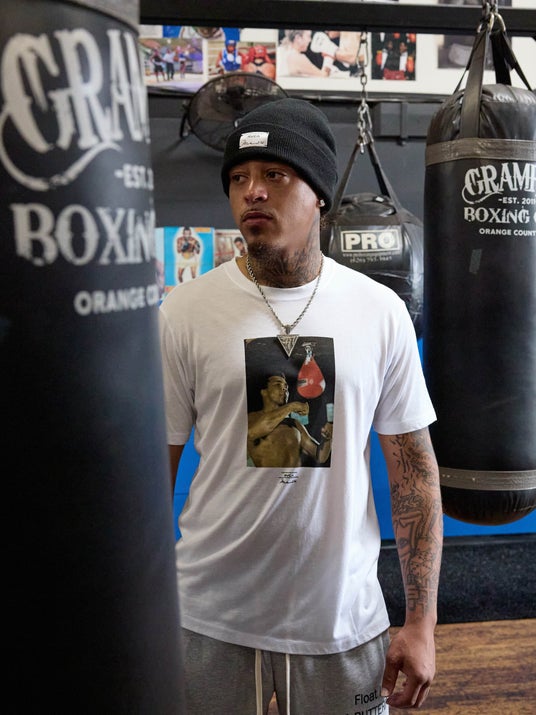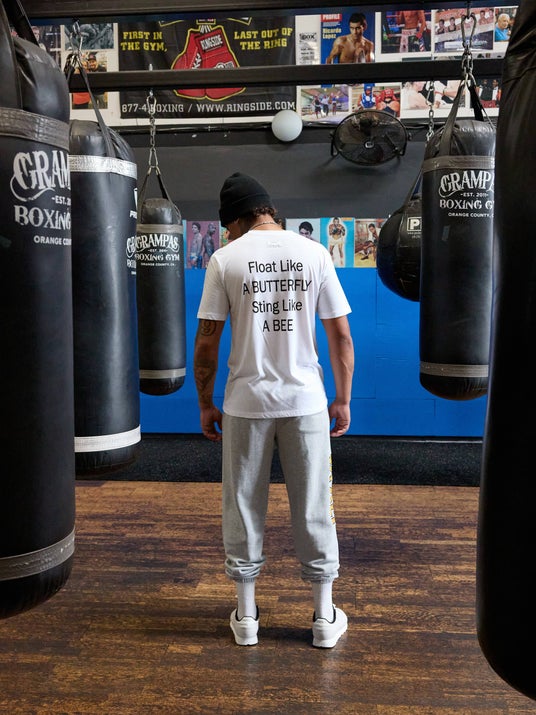 本コレクションでは、アリの残した名言や、数々の試合の中で生まれた印象的な瞬間をグラフィックに昇華し、彼の精神を現代のストリートスタイルへと落とし込みました。フーディー、スウェットパンツ、Tシャツ、ヘッドアクセサリーなどといったアイテムの随所に込められたデザインは、着る人に「限界を超える勇気」と「信念を貫く強さ」を語りかけます。
