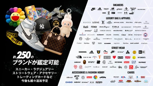 現在、スニーカーブランドをはじめ、アパレル、アクセサリー、ラグジュアリーブランド、トレーディングカードなど約250のブランドを鑑定することができます。今後も対応ブランドを追加してまいります。