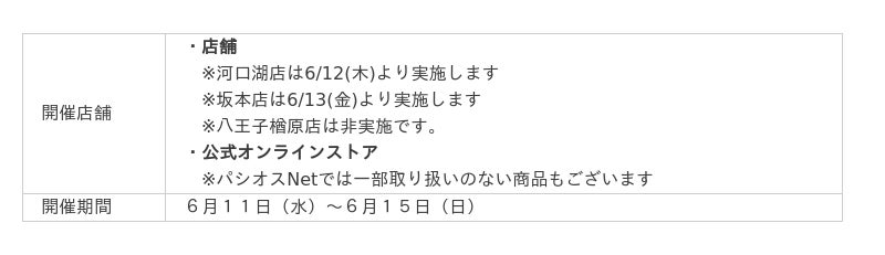 株式会社田原屋(本社所在地:神奈川県川崎市、代表取締役会長:田熊 太郎、代表取締役社長:甲斐 直裕)は、6/11(水)よりファッションプラザ[パシオス]で、【Happy Father’s Day】を開催いたします。