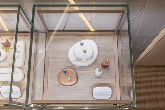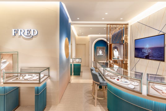 フレッド・サミュエルが愛したフレンチリヴィエラに敬意を表し、この温かい空間は、海と水平線の間のクルーズのように、太陽が降り注ぐジュエリーの世界へと誘います。 この豪華なフロアの中心に位置するブティックは、柔らかなアイボリー色とフレッドブルーの色合いでデザインされており、地中海の砂浜を連想させ、瞬時に海辺の休暇を思い起こさせます。店内に足を踏み入れると、洗練された建築と現代的な美学がシームレスに融合した空間が広がります。インテリアは、メゾンの象徴的なフォース10コレクションと、冒険的なクルーズへ出航する精神を想起させます。