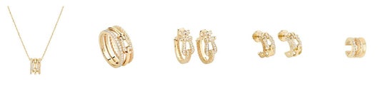 新作 フォース10 ライズ イエローゴールド x ダイヤモンド:ネックレス:731,500円、リング:999,900円、イヤリング ラージモデル:1,980,000円 イヤリング スモールモデル:984,500円、イヤーカフ:360,800円