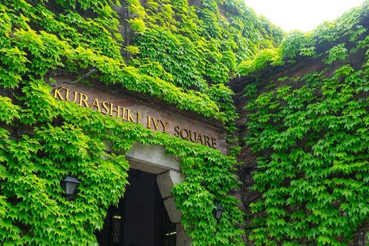 倉敷アイビースクエアはかつて倉敷が天領地であった時代に代官所があった所で、この場所に明治22年(1889年)、旧倉敷紡績所(現在のクラボウ)の本社工場が建設。戦後は倉庫として使用され、蔦の緑に包まれた美しい外観と基本構造を残しながら改装を加え、宿泊・飲食施設および文化施設も併設した複合文化施設として昭和49年(1974年)にオープン。