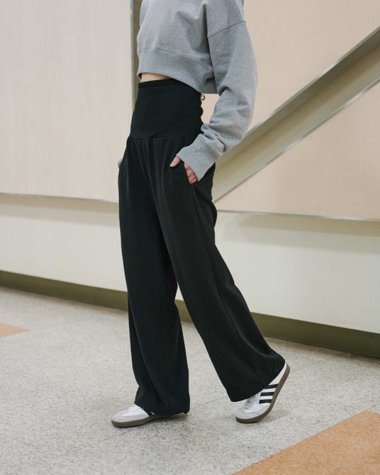 やわらかなスウェット素材と締め付け感の少ないウエスト仕様により、移動中もストレスフリーな着心地を実現しました。