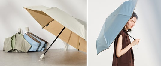 人気急上昇中の自動開閉傘は、ボタン一つで開閉ができる利便性が魅力。「カルオート」は女性にも嬉しい軽量タイプで販売してきました。荷物が多い日も、屋内に入るときに片手でパッと閉じられるので、自動開閉を使うと他には戻れない!という声もよく聞きます。今回はUVカット率/遮光率100%、高い遮熱性能も持った日傘(晴雨兼用傘)に新たなバリエーションが登場しました。