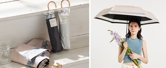 デザインはトレンドの”透け感”を取り入れオーガンジーを施した「ルシード」、大きなブロッキングが上品な印象の「ブロックボーダー」。ベーシックな無地は、開いた時に星のような形になるカッティングで一工夫を加えました。日傘シーズンを楽しく、快適に過ごしていただける1本です。