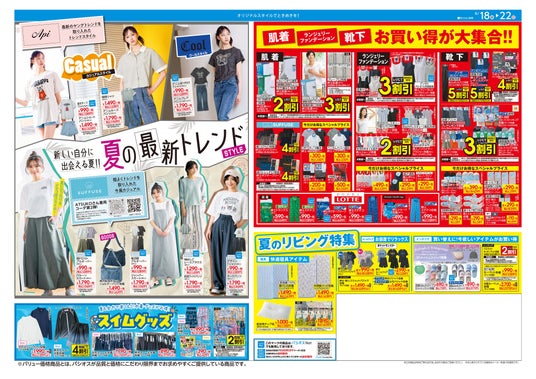 チラシ裏面では、新しい自分に出会える夏【夏の最新トレンドSTYLE】を開催。人気のファッションインフルエンサー「ATSUKOさん」着用コーデを紹介いたします。