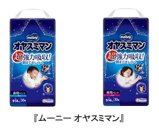 2024年11月には、おやすみ前の“はき替え”をお子さまにお楽しみいただけるよう、夜用パンツ『ムーニー オヤスミマン』をフルカラー・デザインへと一新し、高い評価をいただいております。今回、さらに、おやすみ前の親子のコミュニケーションを楽しんでいただけるよう、世界中で人気のポケモンから“ぐっすり夢ごこちデザイン”を施した『ムーニー オヤスミマン』を発売します。