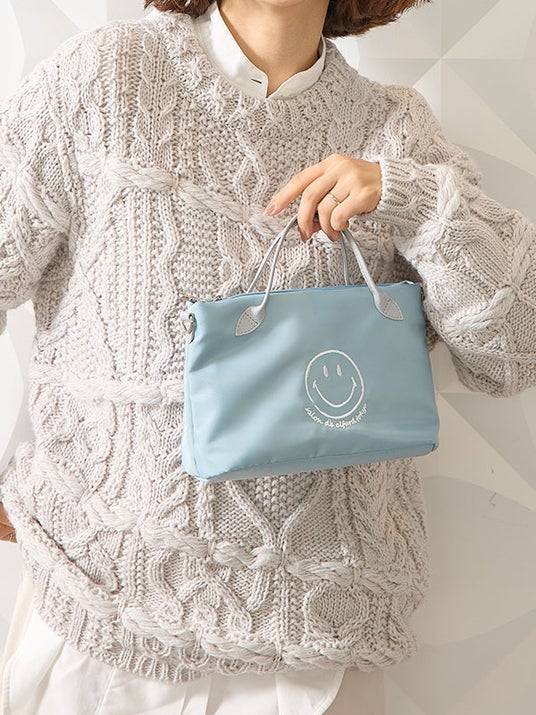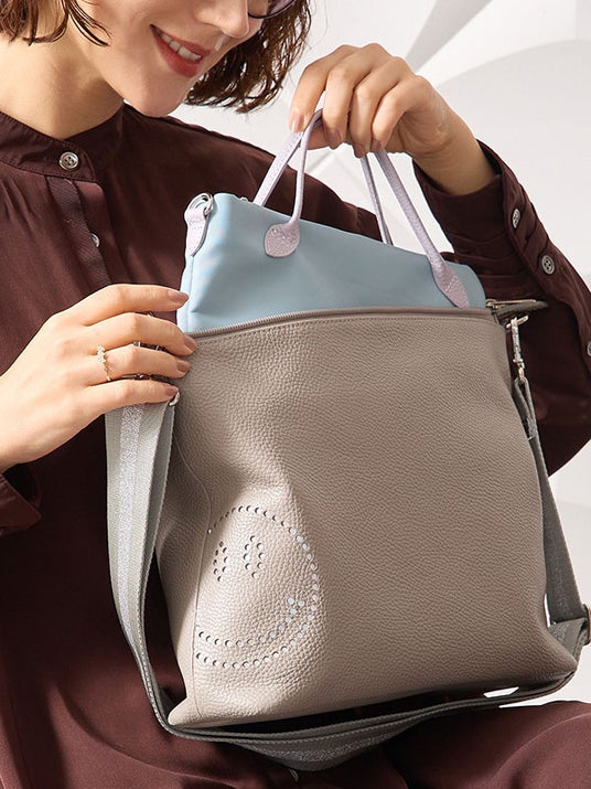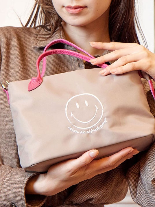 「バッグインバッグ」とはバッグ内の整理整頓のために用いられる小型のバッグのことで、「インナーバッグ」と呼ばれることもあります。あくまで“バッグの中で使う脇役”なので、単体で使用するには「高級感がない」や「街中でも映えるデザインになっていない」のが実情でした。そこで私たちは海外の有名ブランドも用いているようなレベルの上質な素材、そして単体でも用いることができるデザインの「スマイル バッグインバッグ」を制作しました。普段遣いにも活躍する“主役級”のデザインでありながら、バッグの中に入れても整理力を発揮する、“二刀流”の仕様です。