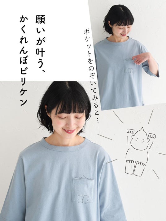 ポケットの外からはお顔が見えませんが、中を覗くとビリケンさんが隠れています。幸福の神様ビリケンさんがそばにいれば願いが叶うこと間違いなし!?
