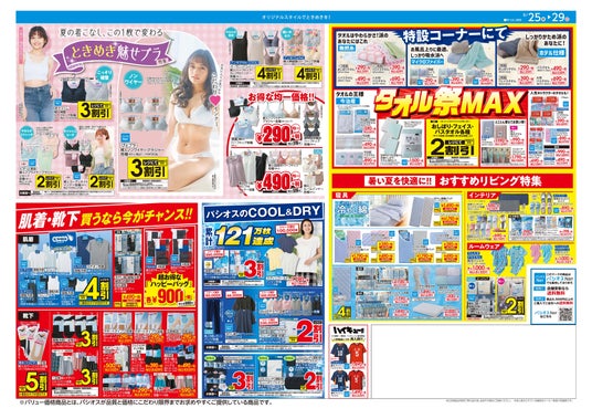 チラシ裏面では、ランファン・肌着・靴下がお買い得価格で登場。