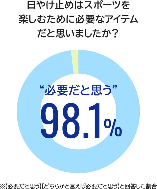 ・日やけ止めはスポーツを楽しむために必要なアイテムだと思う人は全体の98.1%
