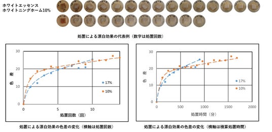 4. 漂白前および各回の漂白処置後に、色彩計(NR-12、日本電色)を用いて測色を行い、得られた測色値から漂白前と各回漂白後の色差を算出しております。