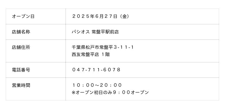 千葉県松戸市の「西友常盤平店」に6月27日(金)「パシオス」の新店をオープンいたします。