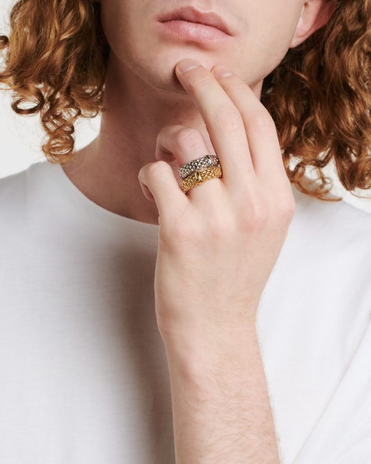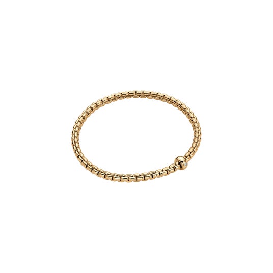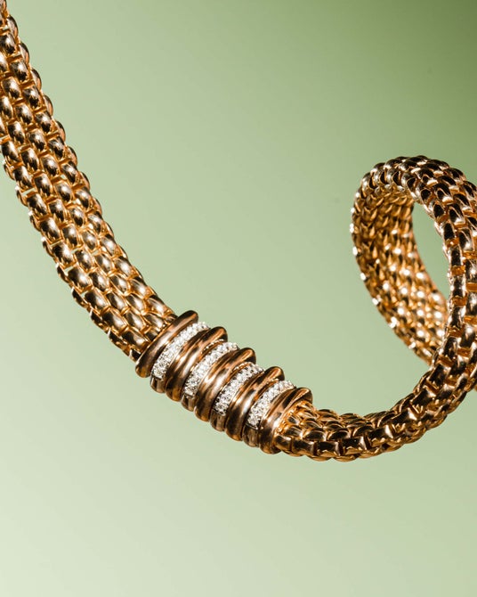 【FOPEのクラフツマンシップとテクノロジーの融合】 イタリア ヴィチェンツァの工場では、技術者と熟練した金細工職人がオートメーションとロボット工学を活用して、最高品質のジュエリーを制作しています。FOPEが革新的技術は2つあり、1つは、ブランドの象徴ともいえるオリジナルの「Novecento(ノヴェチェント)」メッシュチェーン。そして2つ目は、特許済みの「Flex’it(フレグジット)」システム。この技術では、K18ゴールド製の極小スプリングをチェーンリングに埋め込み、ジュエリーに収縮性と柔軟性を持たせています。その結果、体に優しく馴染む着け心地を実現。この2つの革新が融合することで、FOPEジュエリーは世界中の人々に愛されています。